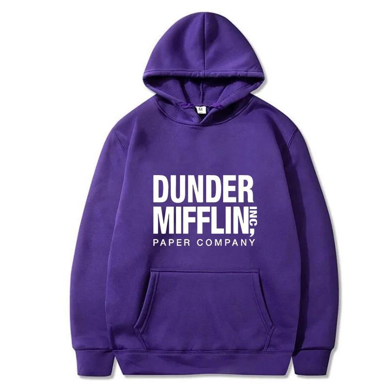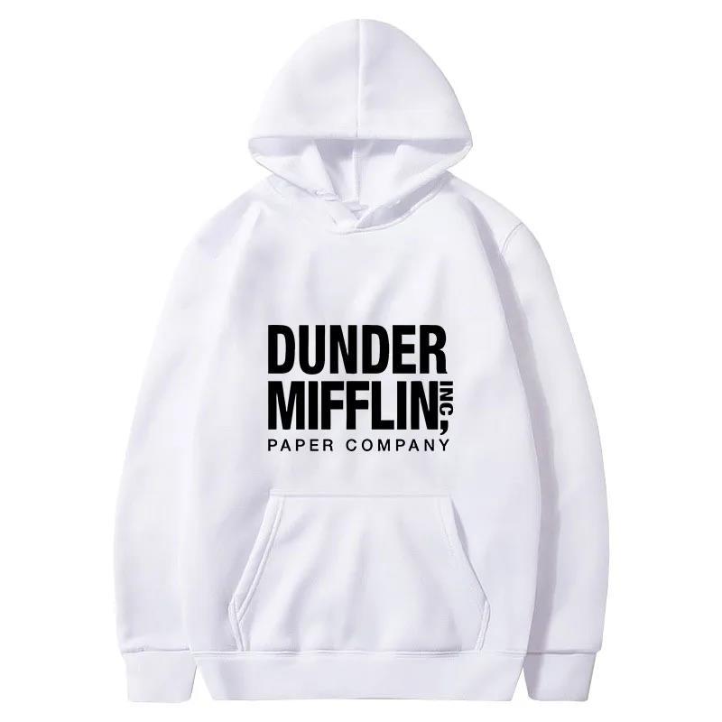 • This Unisex Dunder Print Hoodie provides a loose fit for ultimate comfort. Stay cozy and stylish while representing your favorite fictional paper company. Perfect for any fan and made for all genders.