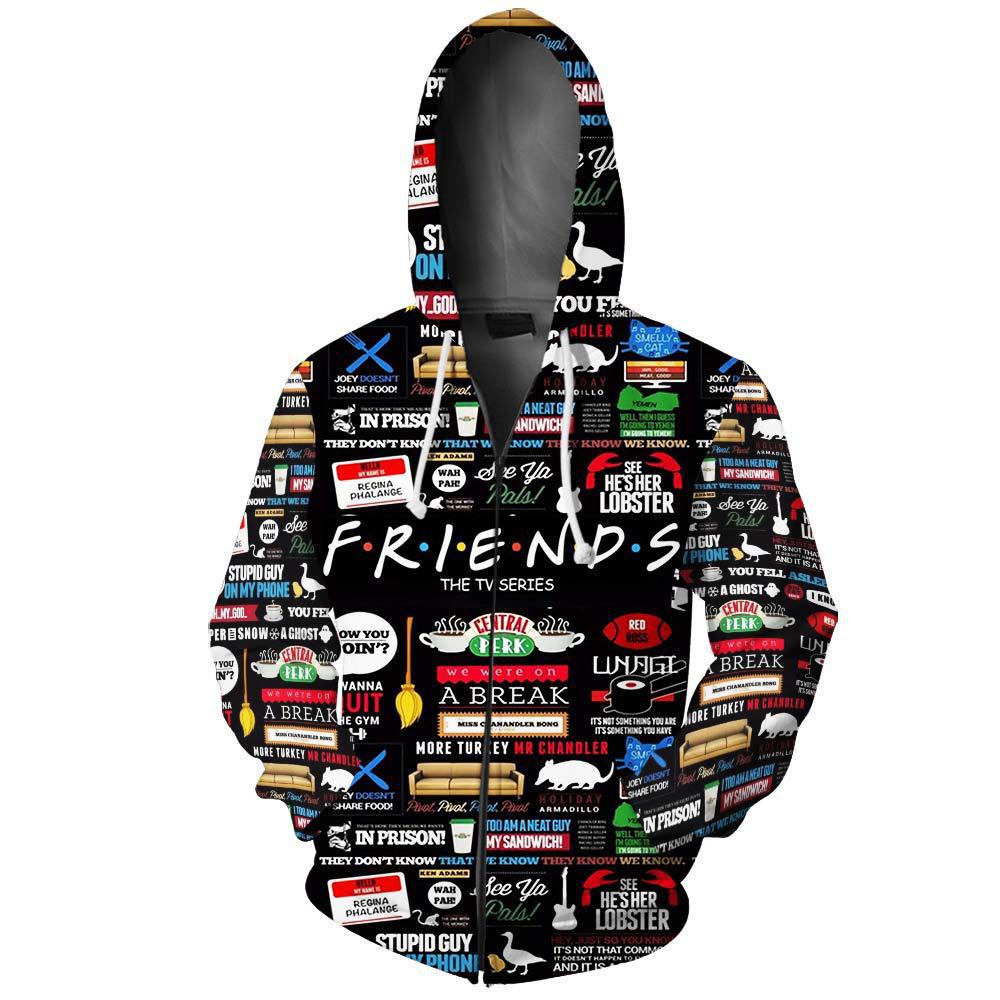 • Stay warm and comfortable in this unisex Friends 3D printed hoodie. Made with cozy materials, it is perfect for lounging or staying active. With its loose fit and fun design, this hoodie is sure to become a staple in your wardrobe.