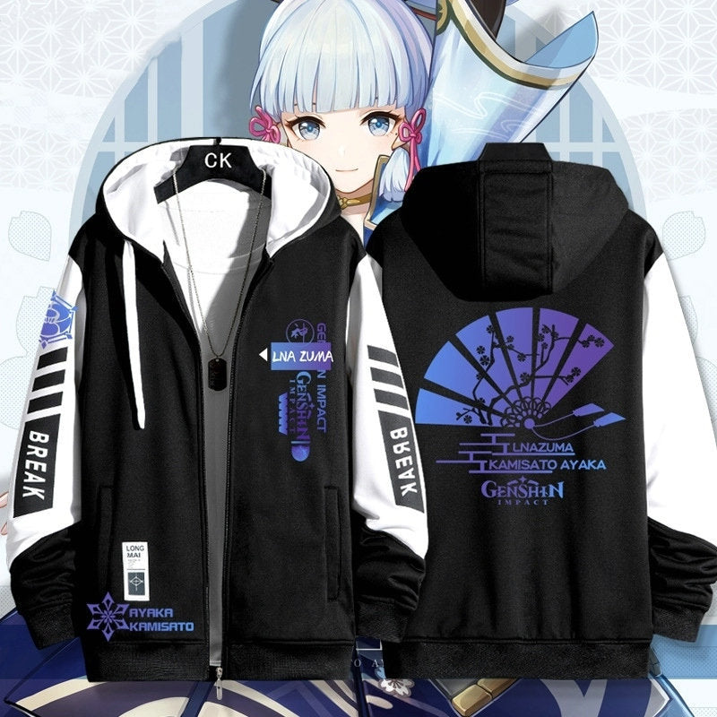 • Effortlessly combine style and comfort with our Unisex Game Kamisato Ayaka Cosplay Hooded Jacket. Featuring a zip up design, stay cozy and warm while showcasing your love for gaming. Perfect for both men and women, this jacket is a must-have for any cosplay enthusiast.
