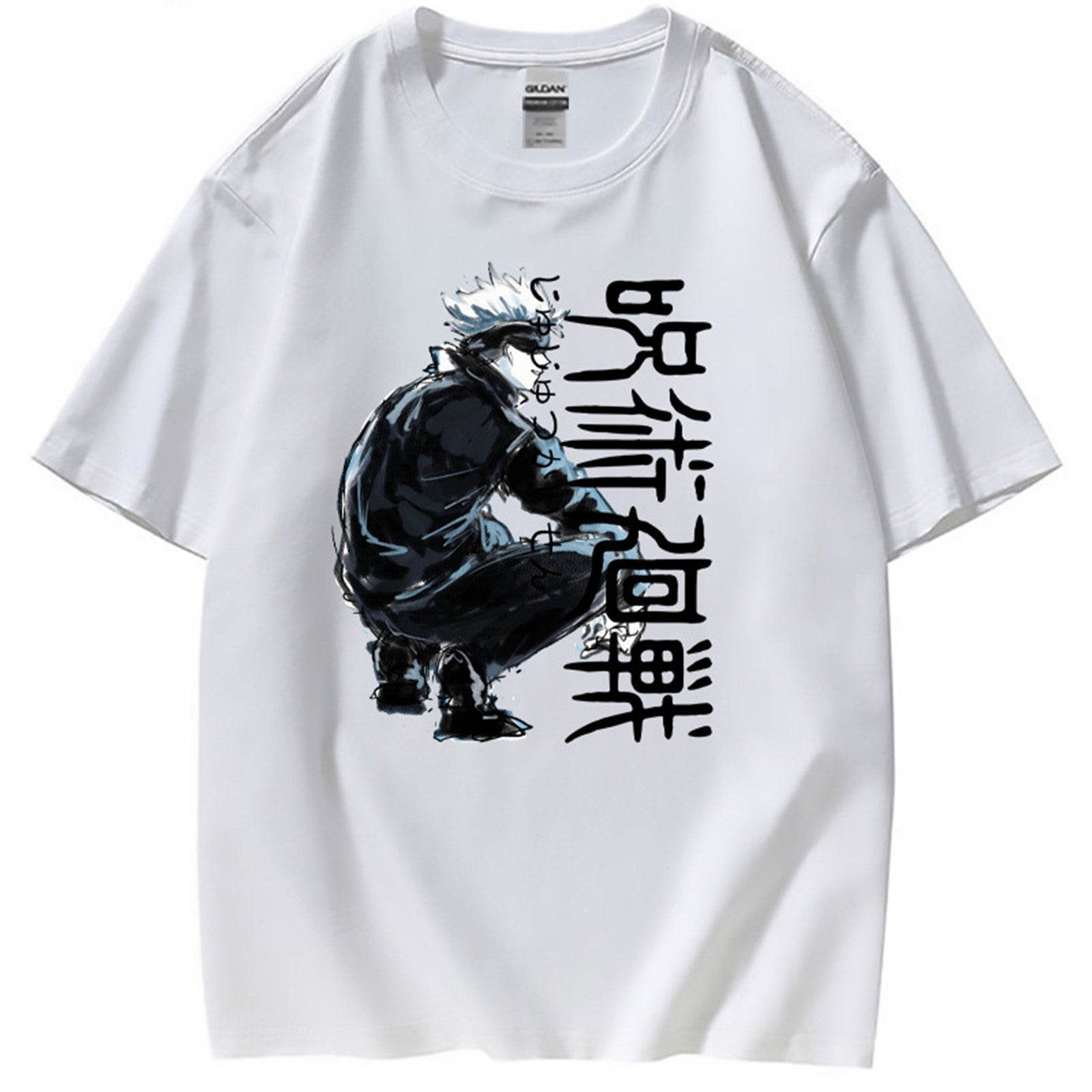• This comfortable and loose t-shirt is made of soft cotton material. Perfect for both men and women, it allows for easy movement and comfort. With a stylish Gojo print, it's a versatile addition to any wardrobe.