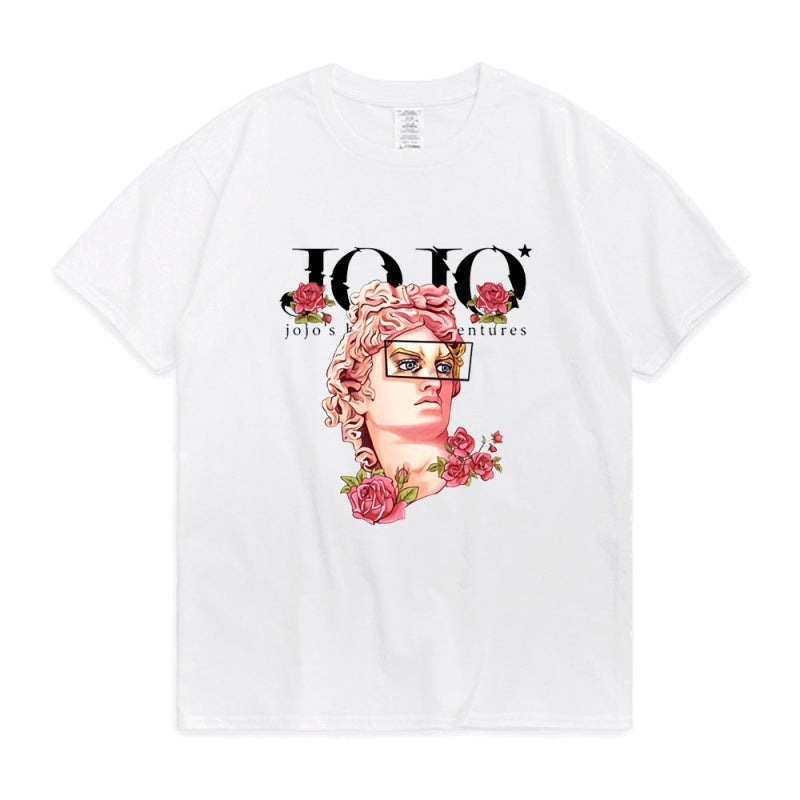 • This unisex T-shirt features a relaxed and casual fit, making it a versatile addition to any wardrobe. With its unique Jojo Statue graphic print, it adds a touch of style to any outfit. Made from high-quality materials, it offers both comfort and durability.
