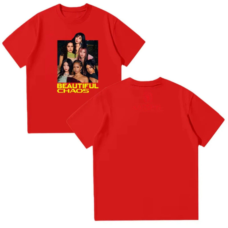 • This unisex T-shirt combines comfort with bold style, featuring the striking Beautiful Chaos logo print inspired by Kpop culture. Crafted from soft, breathable fabric, it offers an easy fit for all-day wear. Whether you're heading to a concert or just hanging out, this tee lets you showcase your passion effortlessly while staying comfortable.