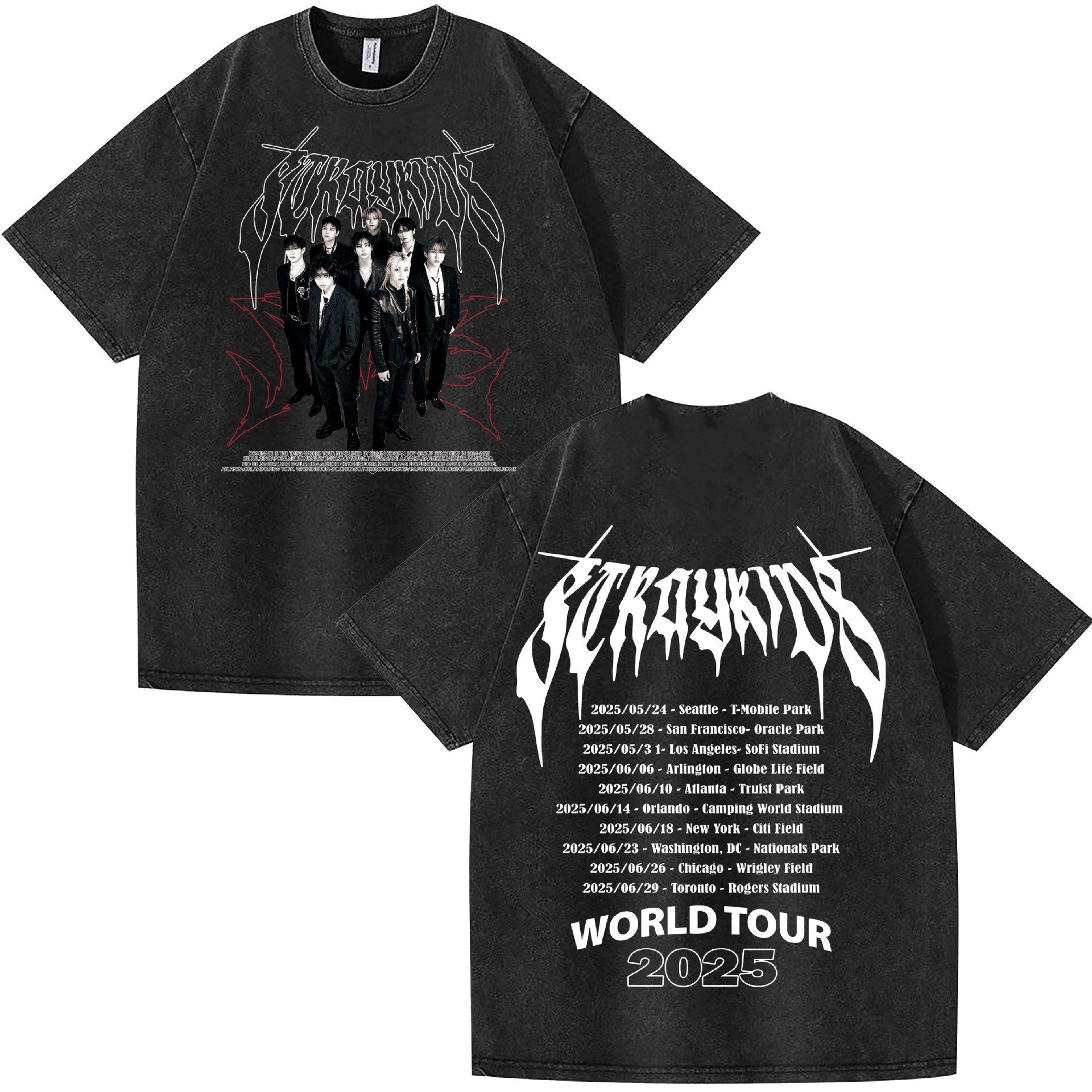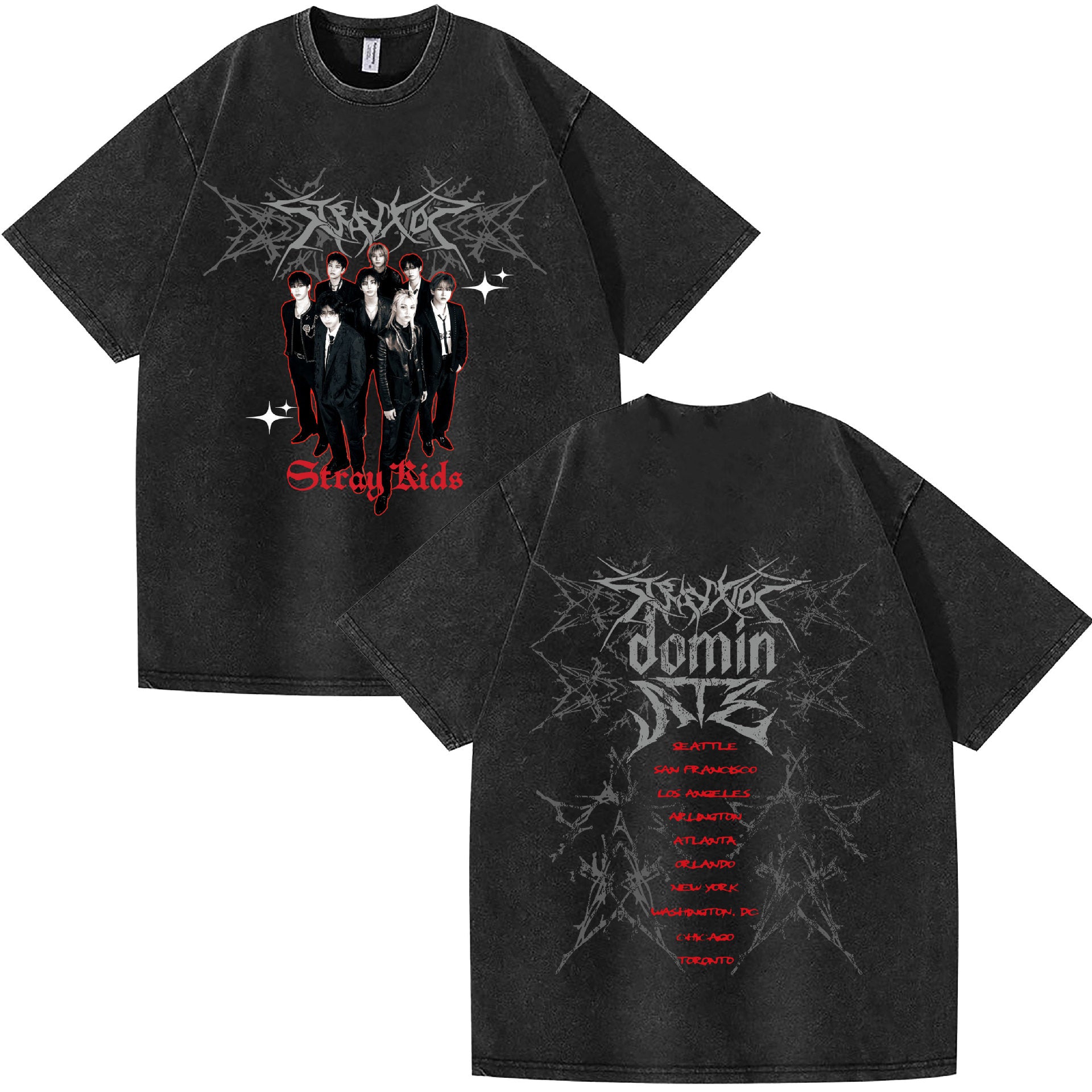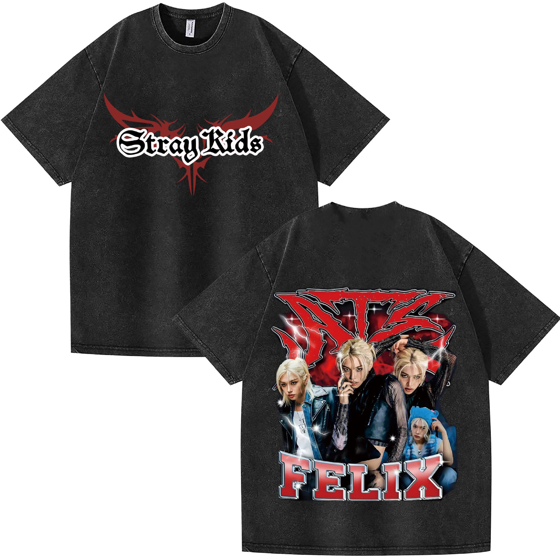• This unisex Kpop logo print t-shirt features a relaxed fit with short sleeves and a washed finish, offering a soft, lived-in feel. Designed for casual comfort, it combines style with breathability, making it an ideal choice for fans seeking everyday wear that reflects their passion. The durable print ensures long-lasting visual appeal, while the loose cut provides ease of movement throughout your day.