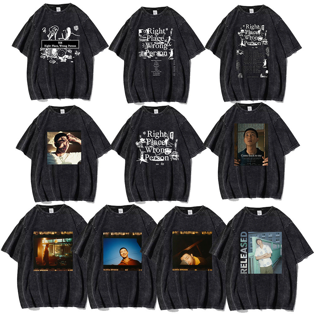 \This unisex RM Kpop poster graphic washed T-shirt combines casual comfort with iconic style. Crafted with a soft, washed fabric, it offers a relaxed fit suitable for everyday wear. The bold graphic print celebrates RM’s dynamic presence, making it a perfect choice for fans seeking both comfort and a statement piece. Ideal for layering or wearing solo, this T-shirt blends streetwear appeal with Kpop culture effortlessly.