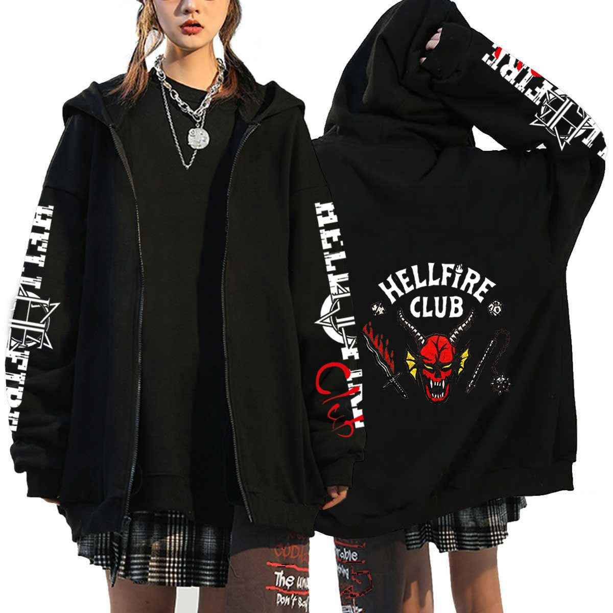 • This unisex hoodie features a loose fit, providing both comfort and style for any occasion. The loose fit allows for easy movement and layering, perfect for any weather. Stay trendy and comfortable with the Unisex Trendy Hellfire Club Zipper Hoodie.