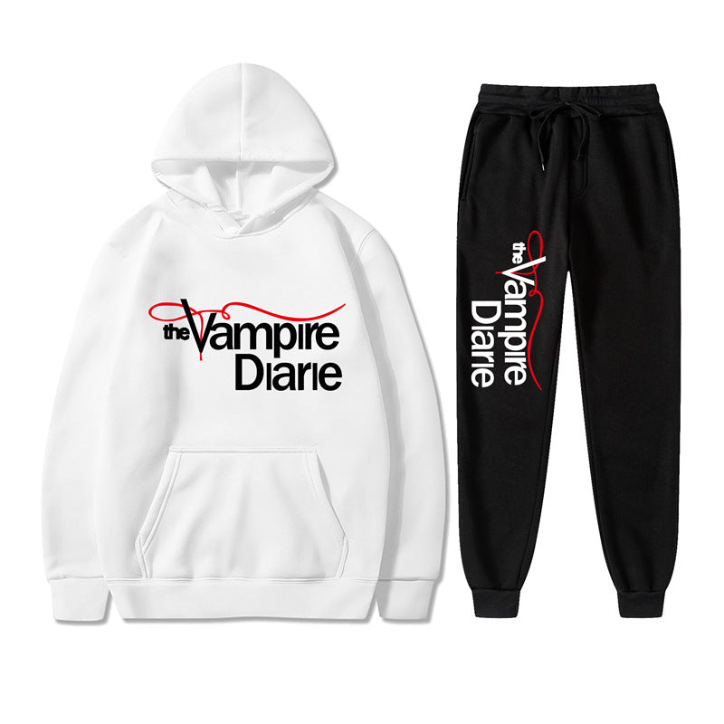 • This Unisex TVD Logo Printed Casual Hoodie Sweatpants Set offers a loose fit for comfortable wear. Perfect for lounging or running errands, this set provides both style and convenience. Made with high-quality materials, it's a must-have for any casual wardrobe.