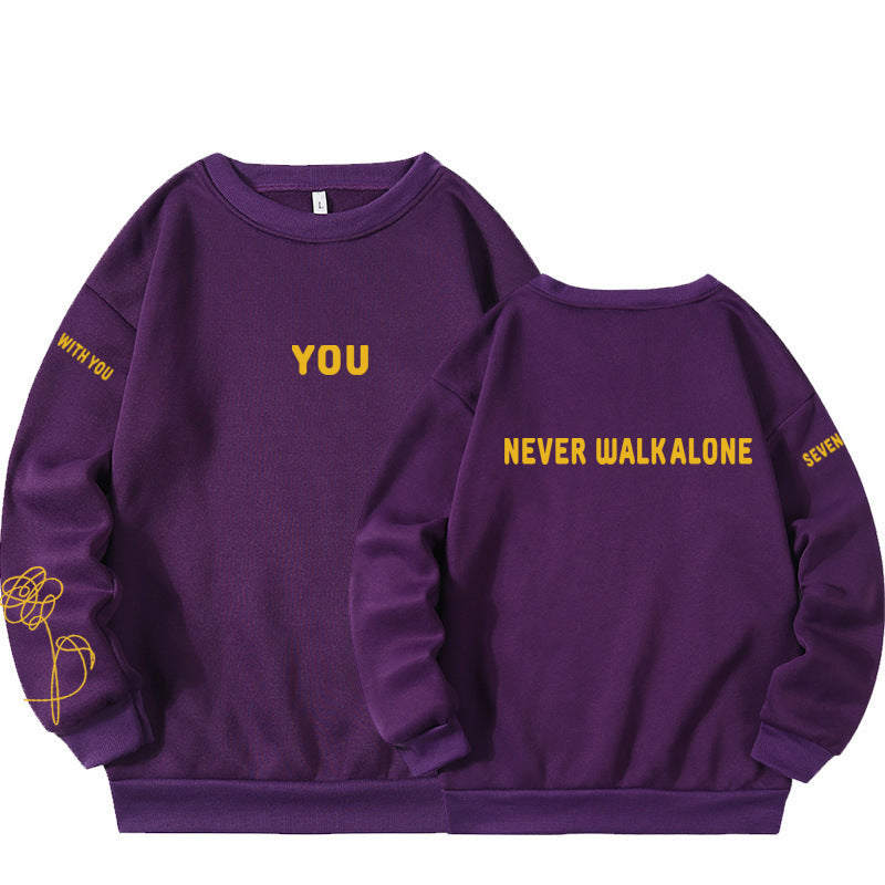 • Stay comfortable all day in the Unisex You Never Walk Alone Round Neck Sweatshirt. Its loose fit provides ultimate comfort, making it the perfect addition to your wardrobe. Whether running errands or relaxing at home, this sweatshirt will always have you feeling comfortable and at ease.