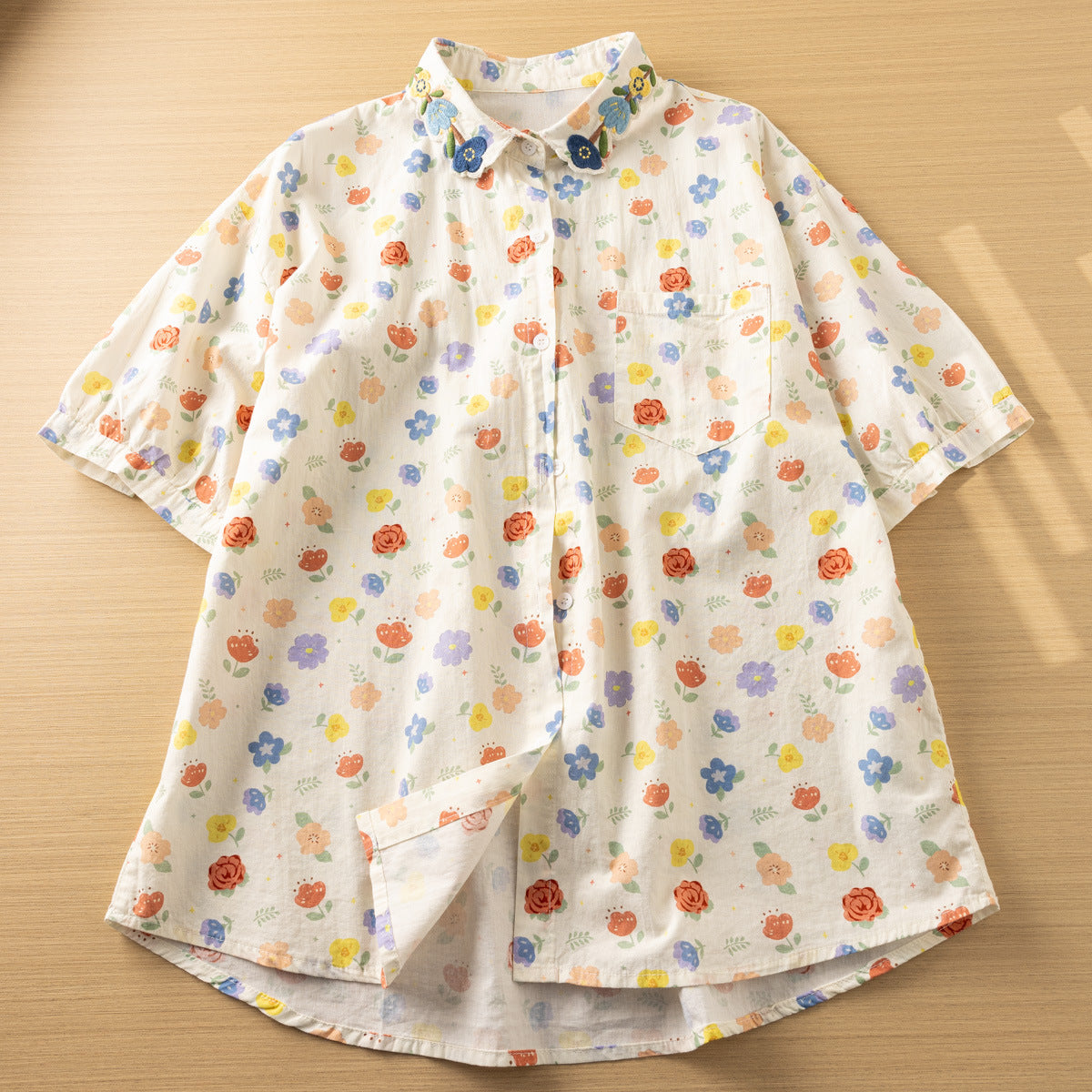 • This versatile short-sleeved shirt features a playful cartoon print, making it a cute addition to any casual outfit. Its unique design adds a touch of fun and personality to your wardrobe, perfect for expressing your individuality and standing out from the crowd. With its lightweight and comfortable material, this shirt is both stylish and practical for everyday wear.
