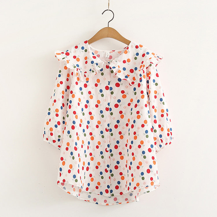 • Discover the perfect blend of comfort and fashion with our Versatile Fresh Cartoon Cherry Printed Doll Collar Shirt. With its cozy and loose fit, this shirt will keep you feeling comfortable all day long. Plus, its playful cherry print adds a touch of whimsy to your wardrobe. Shop now and elevate your style game!