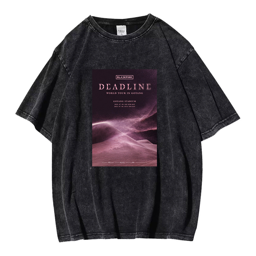 • The Vintage KPOP DEADLINE Graphic Washed T-shirt offers a relaxed, loose fit designed for comfort and effortless style. Featuring a distinctive washed finish and bold graphic print, this tee blends retro aesthetics with modern streetwear appeal. Crafted with quality materials, it ensures durability and a soft feel, perfect for everyday wear or making a statement at casual events. Ideal for KPOP fans seeking both comfort and a standout look.