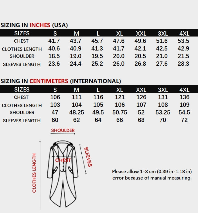 • This Vintage Medieval Retro Costume Mid length Men's Coat is perfect for cosplay events with its jacquard design. Expertly crafted, this coat adds a touch of historical flair to any outfit. Made from high-quality materials, it offers a comfortable fit and exceptional durability. Elevate your costume game with this unique piece.