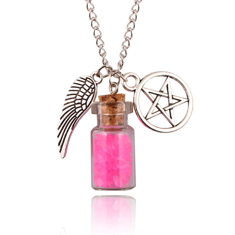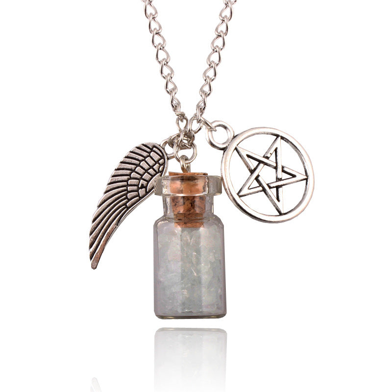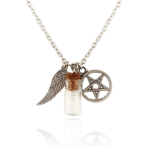 • Elevate your style with the Wishing Salt Bottle Wings Necklace. This chic necklace adds a unique touch to any outfit. Designed with delicate wings and a wish bottle, it is perfect for expressing your individuality. Make a statement with this stylish accessory.