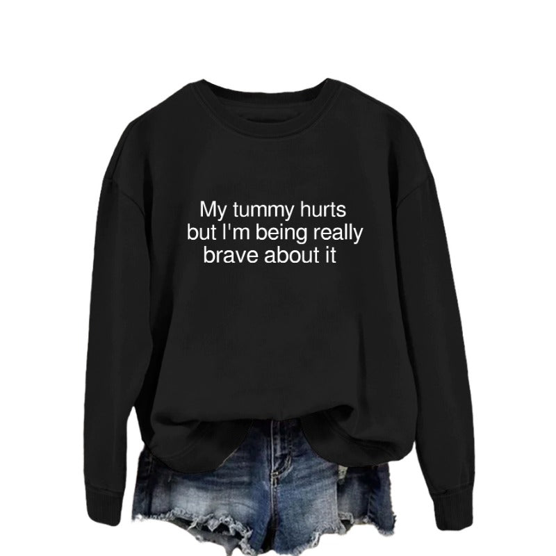 • This 'My Tummy Hurts' sweatshirt makes a funny gift for your girlfriend, wife, or mom! It would look great oversized with leggings or jeans and would make a great gift!