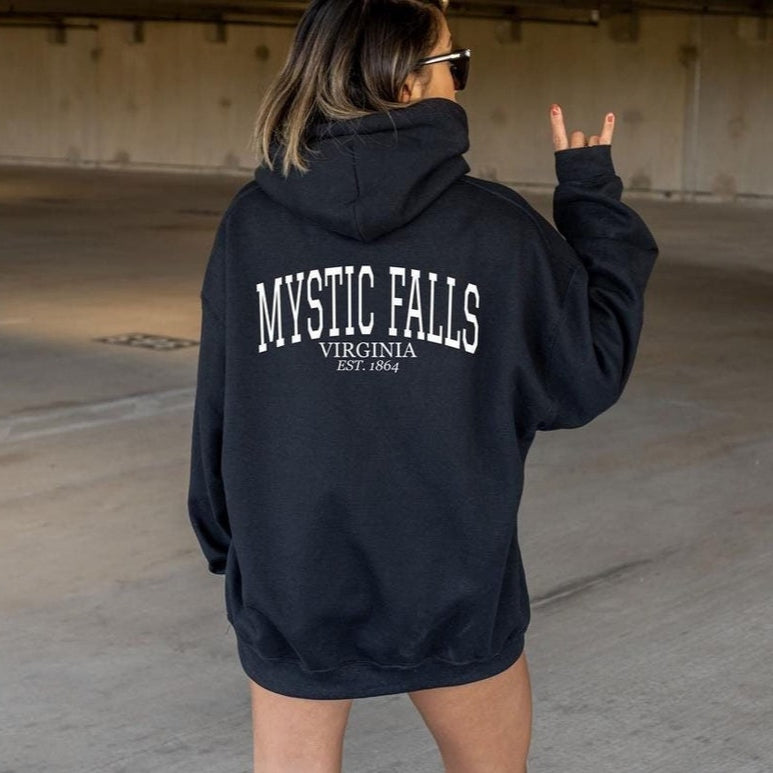 • This Women's Mystic Falls Virginia Est.1864 Hoodie offers a loose, comfortable fit for everyday wear. The loose fit allows for ease of movement and adds a relaxed, laid-back style to your wardrobe. Made with quality material, this hoodie is sure to provide both style and comfort.