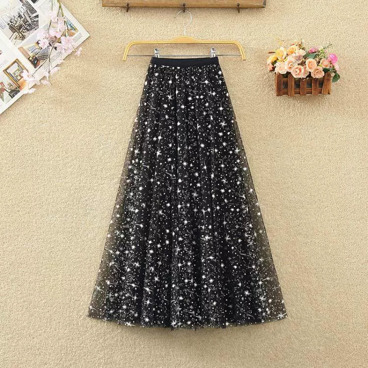 • Discover comfort and versatility with our Women's Starry Sky High Waist Slim A-line Mid length Skirt. Designed with a relaxed fit and casual style, this skirt is perfect for any occasion. Its high waist and slim A-line cut create a flattering silhouette, making you feel confident and stylish. Perfect for dressing up or down, this skirt is a must-have in any wardrobe.