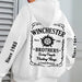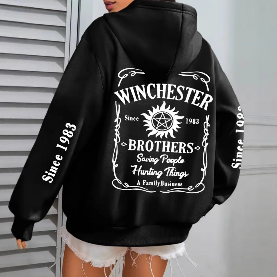 • With a loose fit and stylish letter print design, our Women's Winchester Brothers Hoodie offers both comfort and fashion. Perfect for casual wear or lounging, this hoodie is a must-have for any fan of the popular TV show. Made for the ultimate "fandom" experience, grab yours today!