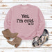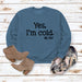 • Stay warm and stylish with our Women's Yes I'm Cold Printed Casual Sweatshirt. Made with a cozy fabric, this sweatshirt will keep you comfortable and fashionable all winter long. Perfect for those chilly days.