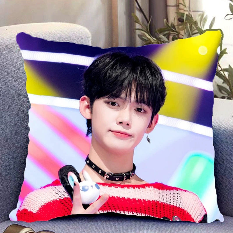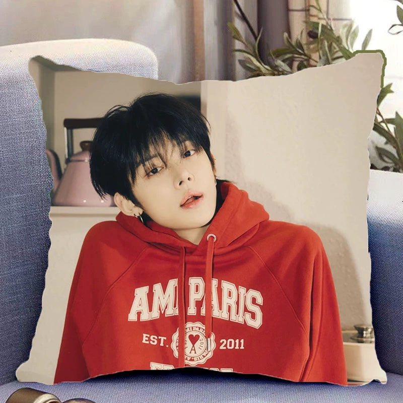 • Yeonjun Double-sided Throw Pillow Elevate your space with this charming double-sided throw pillow, designed to bring personality and comfort to any room. Each side features distinct artwork, giving you versatile styling options that complement different moods and décor themes. The soft, durable fabric ensures lasting quality, while the generous size makes it perfect for couches, beds, or accent seating. Whether you're a devoted fan or simply appreciate thoughtful home décor, this pillow combines aesthetic appeal with everyday functionality. A practical yet decorative piece that transforms ordinary spaces into curated havens.