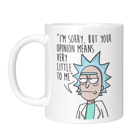 • Your Opinion Means Very Little To Me Rick Ceramic Mug Perfect for fans of irreverent humor, this ceramic mug delivers a bold statement with every sip. Crafted from durable ceramic, it features a witty quote that captures a distinctly comedic attitude. Ideal for coffee, tea, or your favorite beverage, this mug combines functionality with personality. Whether you're gifting it to someone with a sharp sense of humor or treating yourself, it's a conversation starter that brings levity to your daily routine. Dishwasher safe and built to last, it's both practical and entertaining.